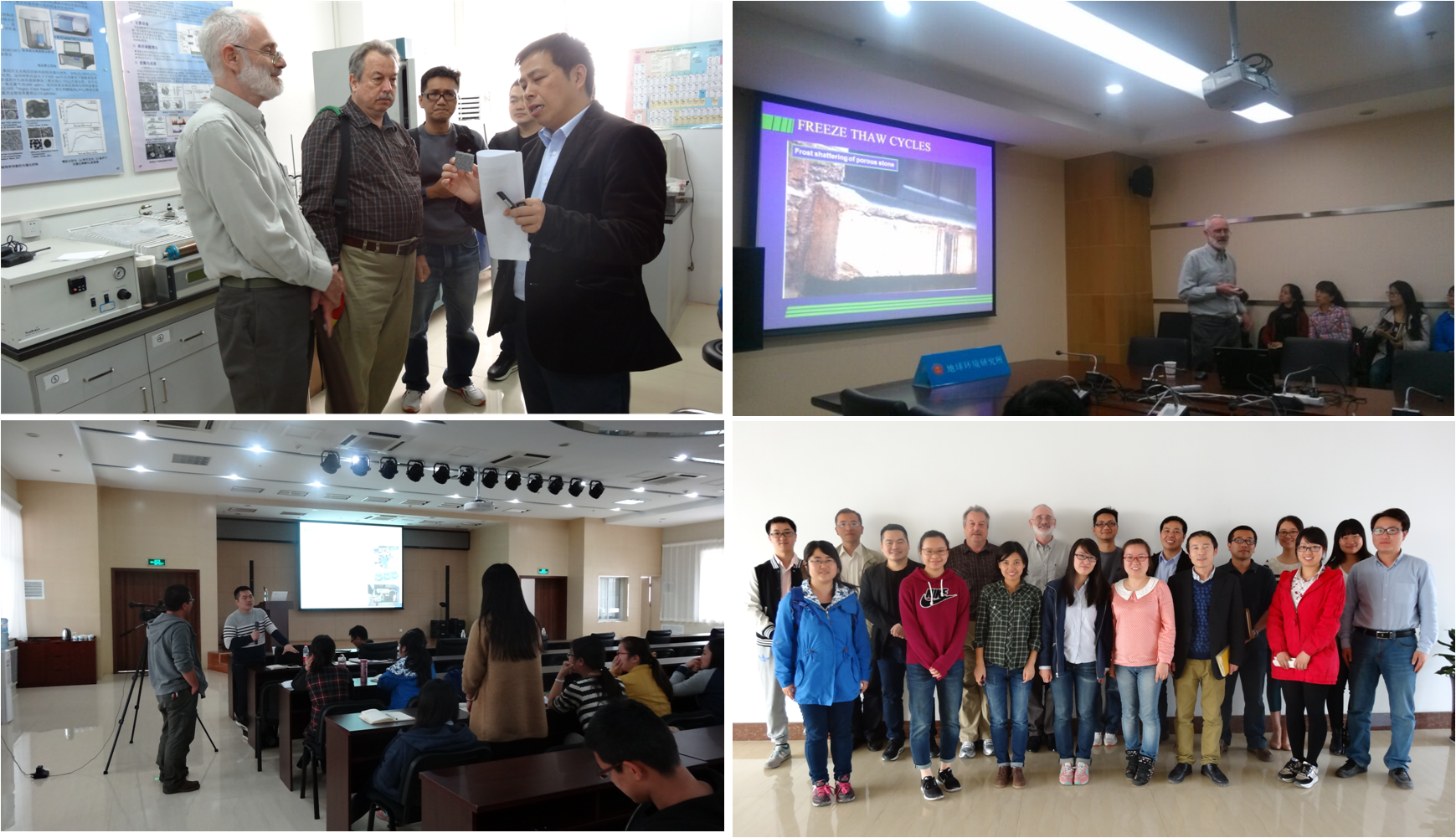 April 16th morning, Brimblecombe Frederick, Dr. Dane Westerdahl Peter, Dr. Ning Ning and Dr. He Jianhui visited the Key Laboratory of aerosol chemistry and physics, and listen to laboratory research progress report. After that, Brimblecombe Peter in the of salts and crusts relevant to the Conservantion of heritage materials Chemistry report in detail about the problems in the world heritage sites, tells the story of the reaction of the interface, analysis of the damage mechanism. On the afternoon of that day, Dr. Dane Westerdahl Frederick shared his research experience for more than 40 years. The problems that should be paid attention to in the selection, calibration and quality control of the on-line monitoring instrument are introduced. April 17th afternoon, Dr. Ning Ning, City University Hong Kong in the development and application of new sensors in the case, and on the calibration of the electrochemical sensor humidity control reasons and methods to do a thorough explanation, and the presence of the teacher, the students were heated discussion.