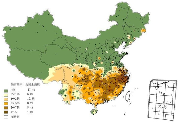 1 China's acid rain area is one of the three major acid rain zones in the world after Europe and North America.