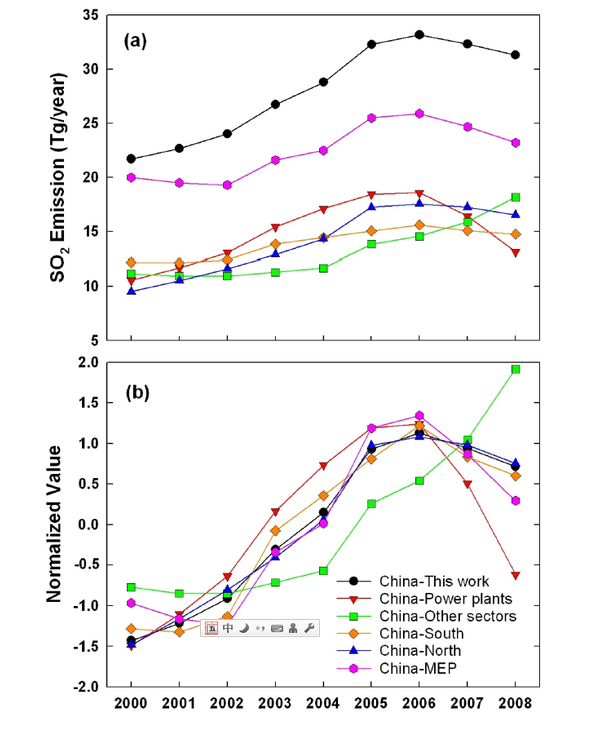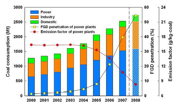 At the same time, China's sulfur dioxide emissions are so (ET al. Lu, 2010):