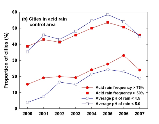 At the same time, the following is the frequency of acid rain occurred in acid rain area